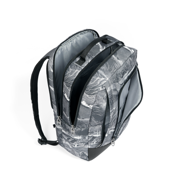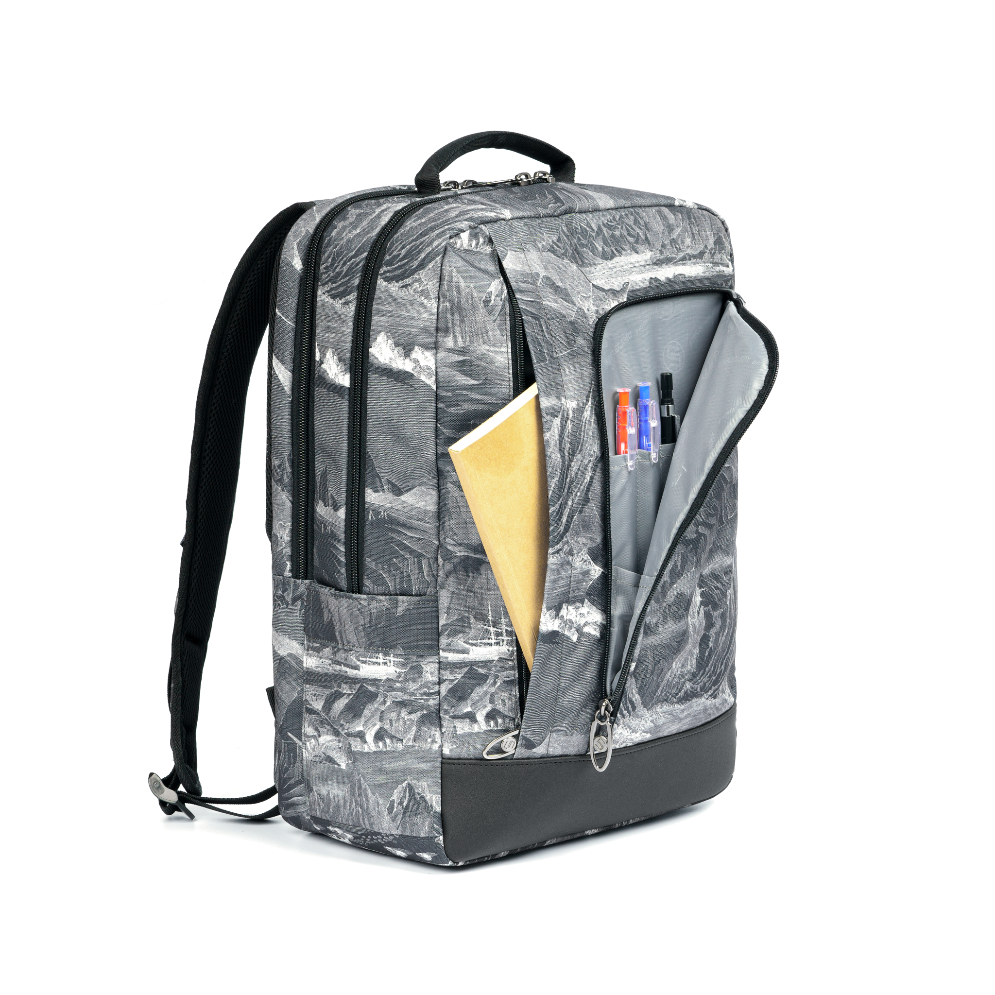 Ngăn dắt viết, điện thoại, ngăn đựng laptop riêng biệt với lớp mút PE chống sốc, ngăn lưới đựng adapter.