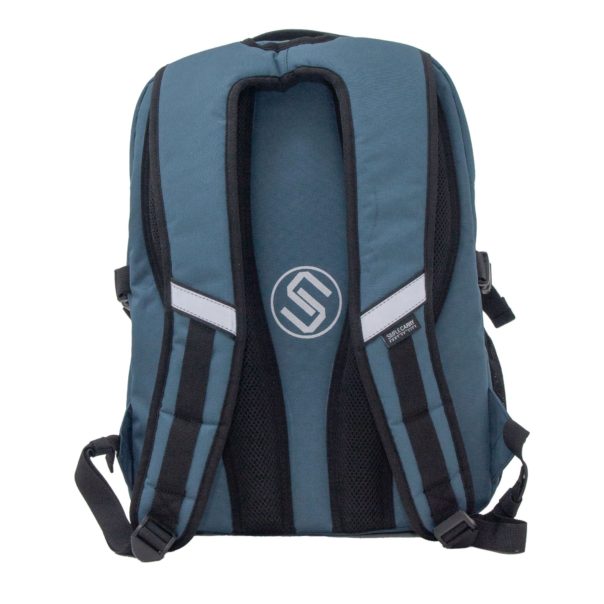 Phần lưng có lớp lưới Air Mesh thoát hơi nhanh, in logo tròn của SimpleCarry.