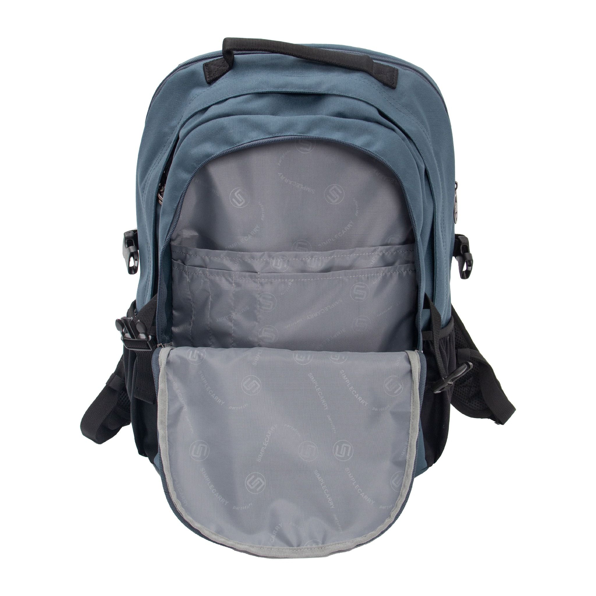 3. Ngăn dắt viết, điện thoại, ngăn đựng laptop riêng biệt với lớp mút PE chống sốc, ngăn lưới đựng adapter, 2 túi hông đựng bình nước ...