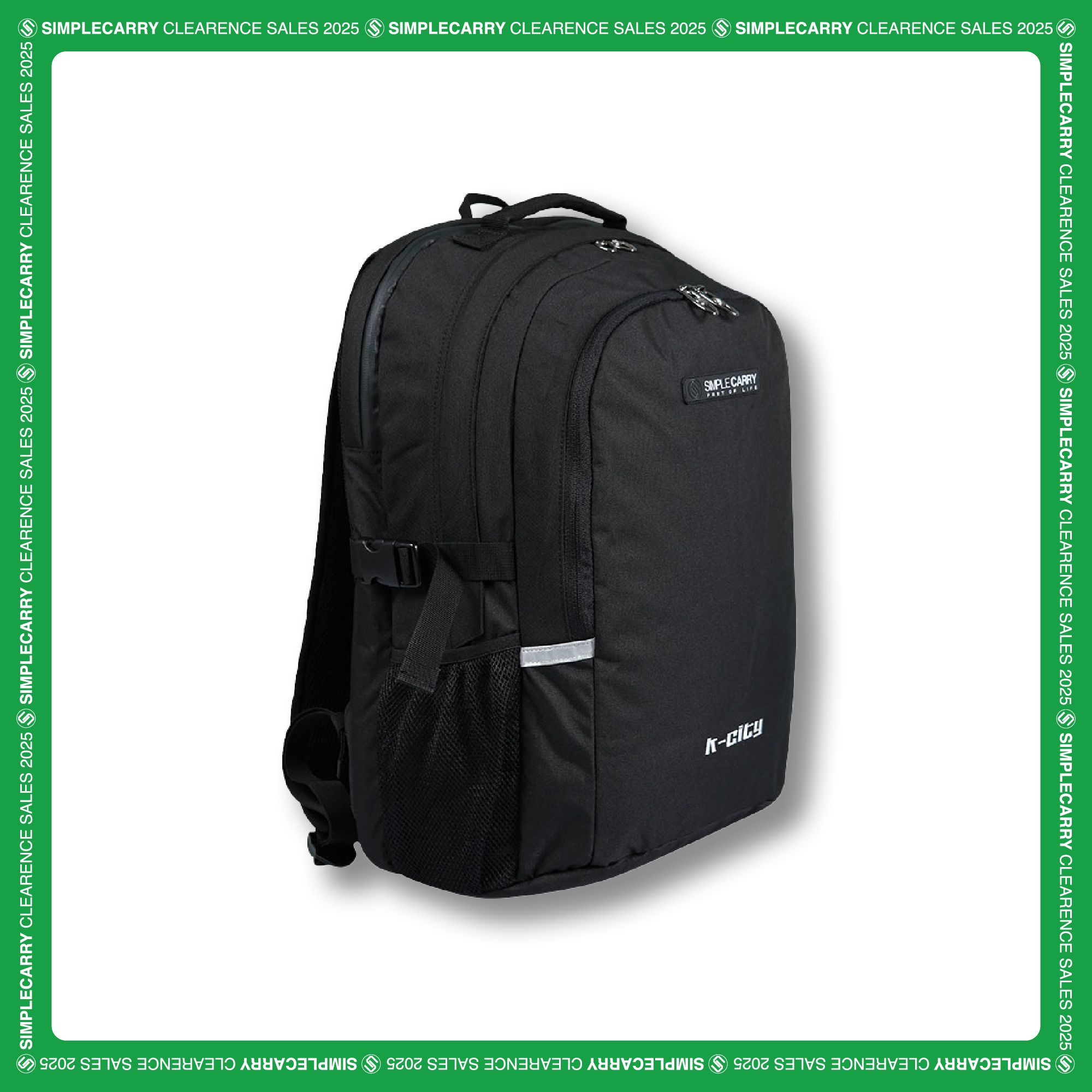 Thân sau: Phần lưng có lớp lưới Air Mesh thoát hơi nhanh, in logo tròn của SimpleCarry