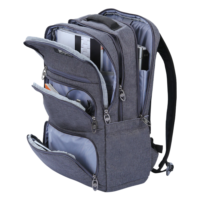 Ngăn dắt viết, điện thoại, ngăn đựng laptop riêng biệt với lớp mút PE chống sốc, ngăn lưới đựng adapter.
