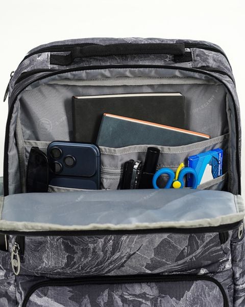 Ngăn dắt viết, điện thoại, ngăn đựng laptop riêng biệt với lớp mút PE chống sốc, ngăn lưới đựng adapter.