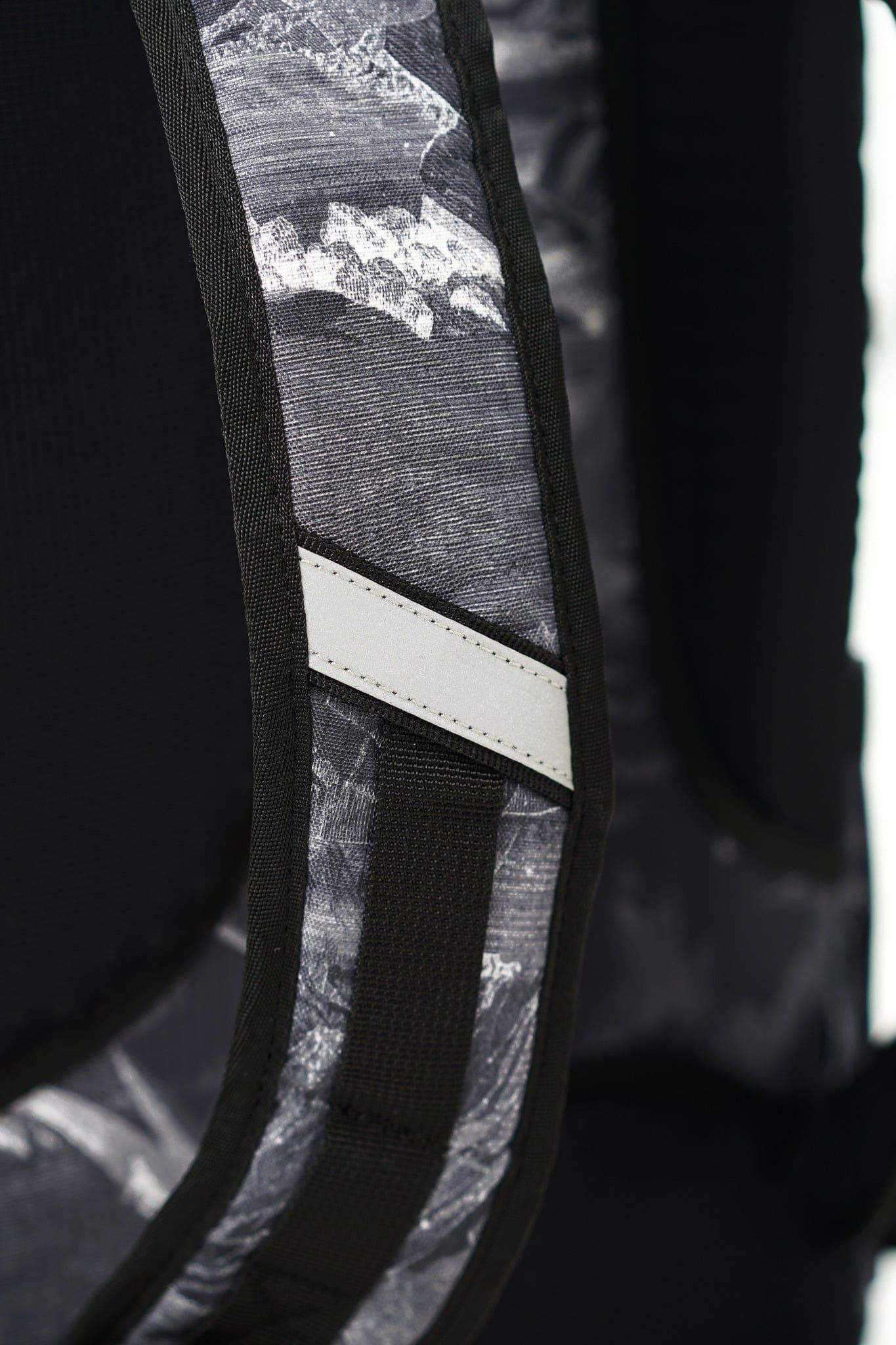 Được may bằng kỹ thuật gấp mép dây viền, thiết kế ôm rất sát hai vai, chắc chắn, việc nới dài – thu ngắn dây đeo vô cùng linh hoạt, quai xách được may phía trên quai đeo. Hai miếng phản quang được may trên quai đeo.