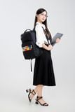 Được may bằng kỹ thuật gấp mép dây viền, thiết kế ôm rất sát hai vai, chắc chắn, việc nới dài – thu ngắn dây đeo vô cùng linh hoạt. Thêu tên thương hiệu trên quai đeo, cách điệu với simili.